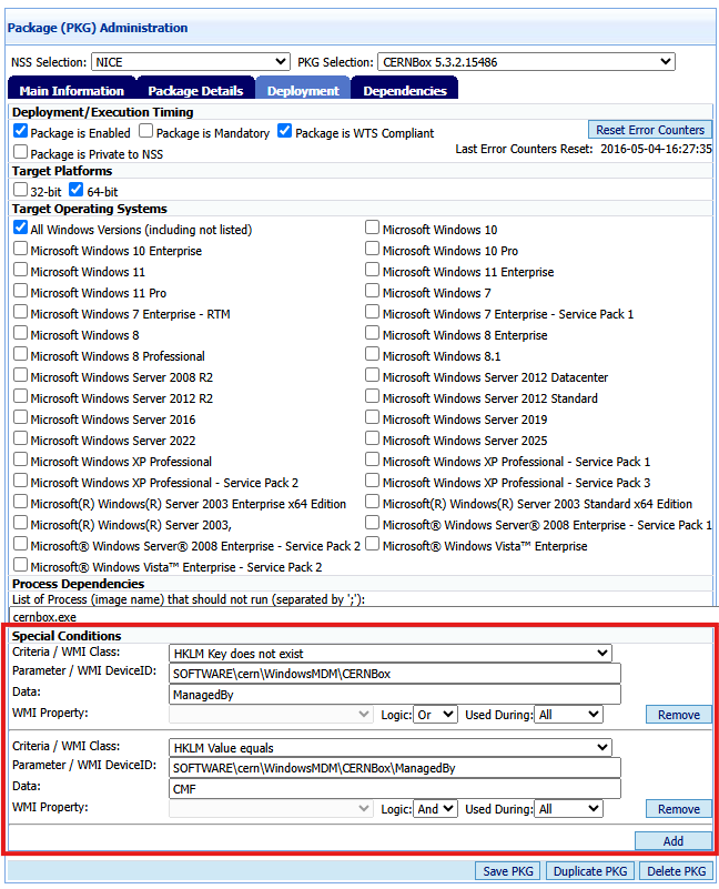 - Add a marker on the respective CMF package in the Deployemnts Section under 'Special Conditions'