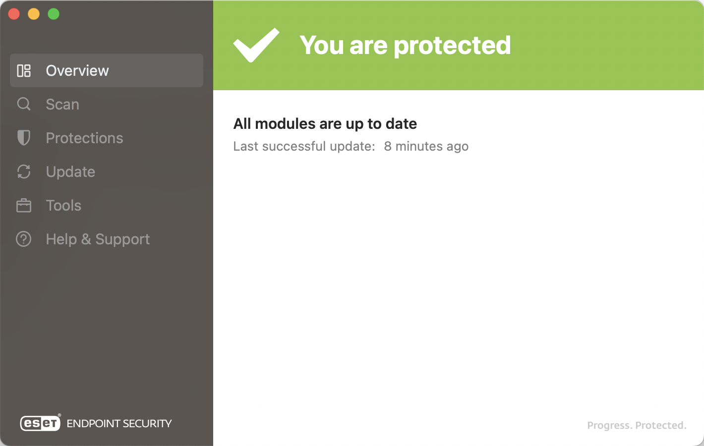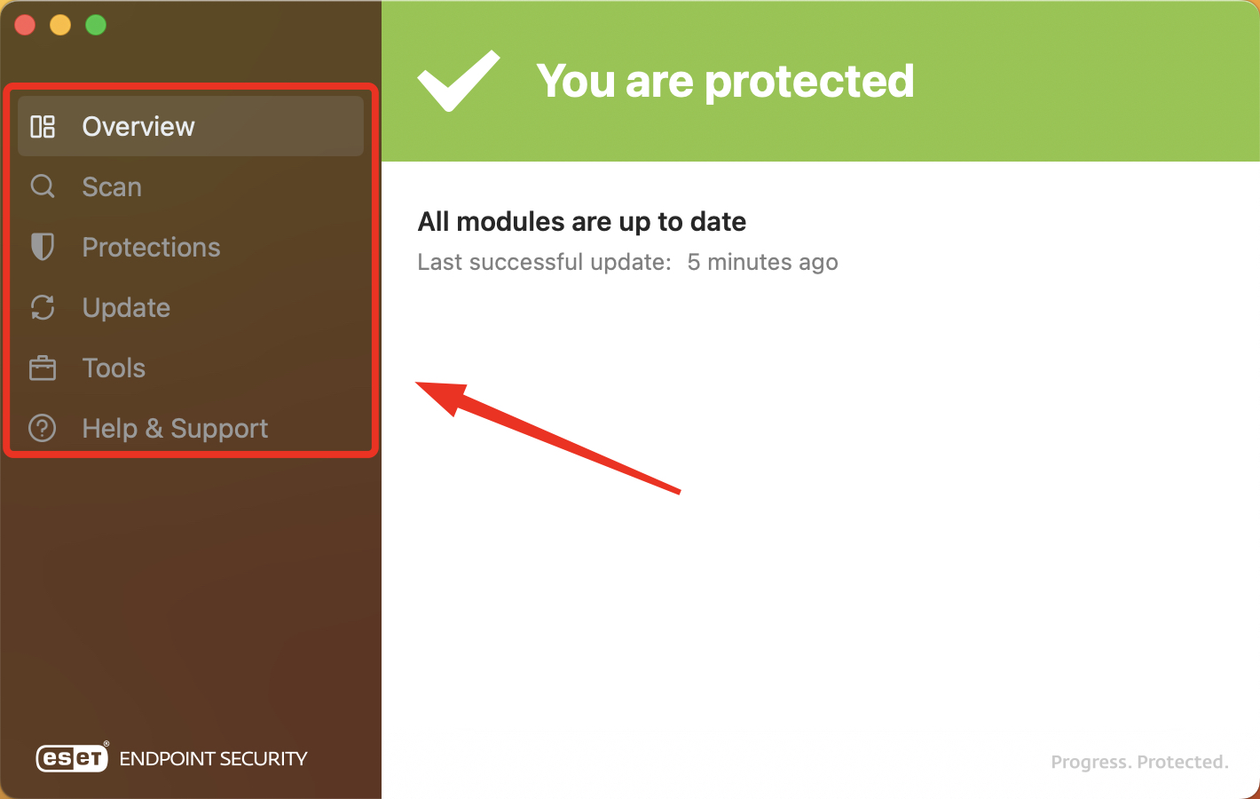 | Overview | Provides information about the protection status of ESET |